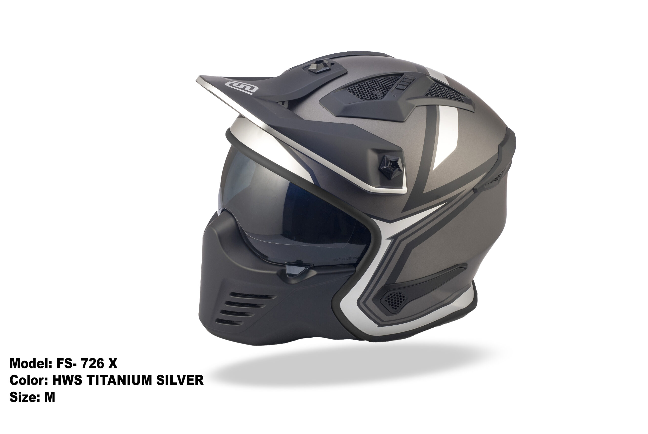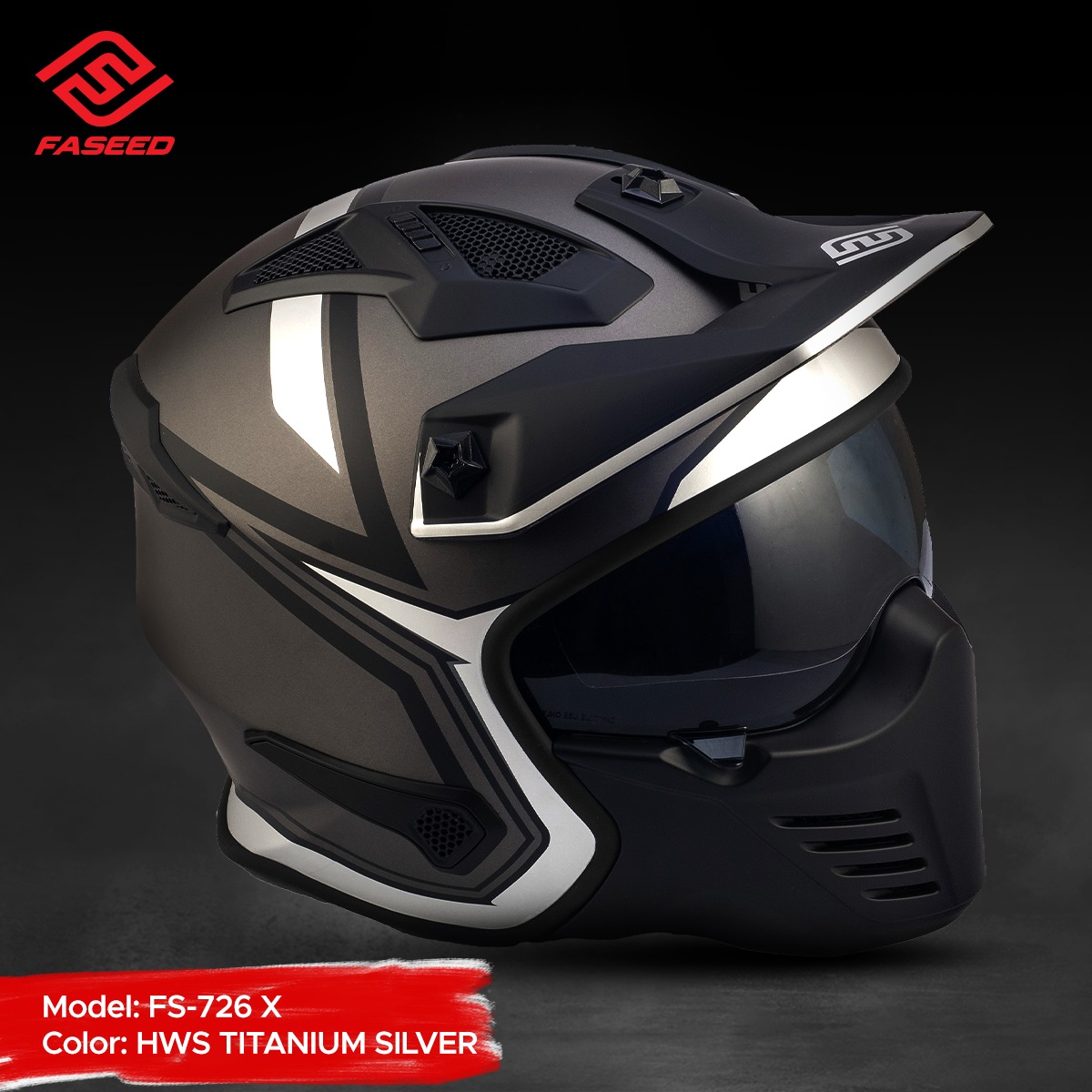 FASEED FS-726 X HWS TITANIUM SILVER Detachable Skull Mask Street Fighter Army Green Motorcycle Helmet