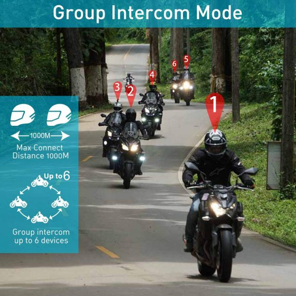 Bluetooth intercom for 6 drivers: Full duplex group Talk Bluetooth system, 1500m intercom distance can enable you with your partner 5 free