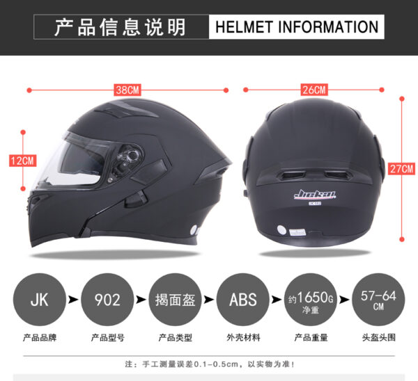 JIEKAI JK-902 Matt Black Uplift Dual Visor Helmet DOT FILPUP