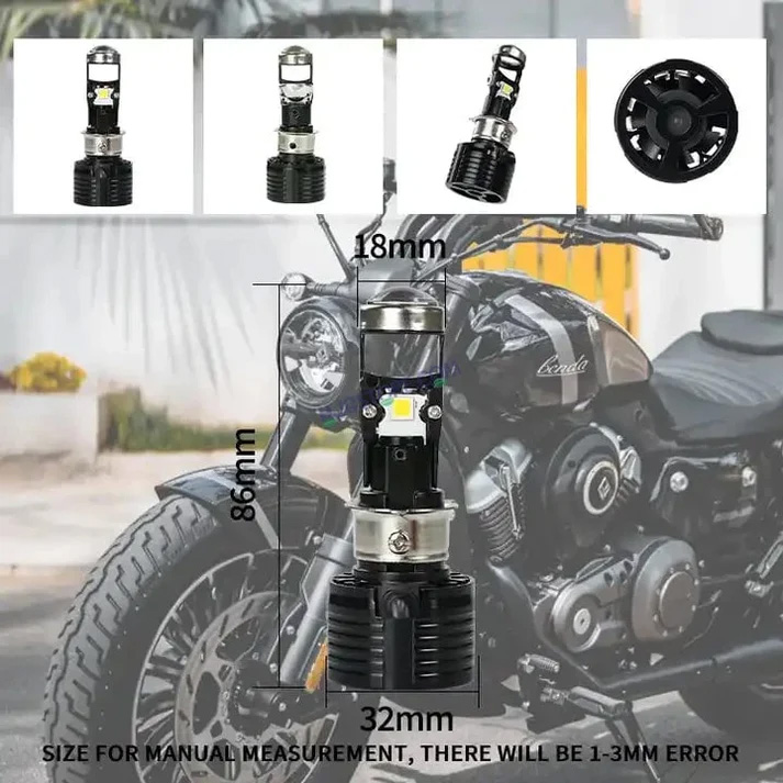 HJG Projector Lens H4 LED Bulb 45W HJG Y6 Projector Light Lamp H4 LED Mini Projector Lens with Fan for Bike Bulb 7000LM Conversion Kit Hi/Lo Beam Headlight 12V/24V for Motorcycle, Set of 1, White LED Headlight Bulb H4 For All Motorcycles