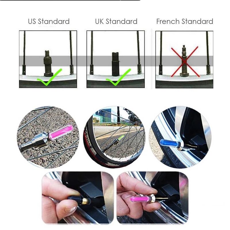 Tire valve cap lights screw onto the valve stem of your car, bicycles or motorcycle in seconds.