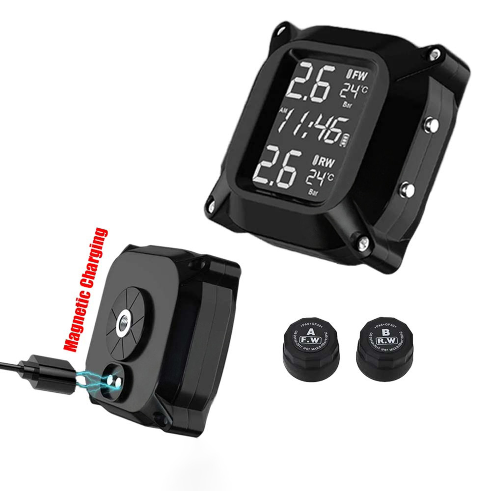 TPMS Tire Pressure Monitoring System Magnetic Charging Air Temperature Sensor Alarm Warning Motorcycle