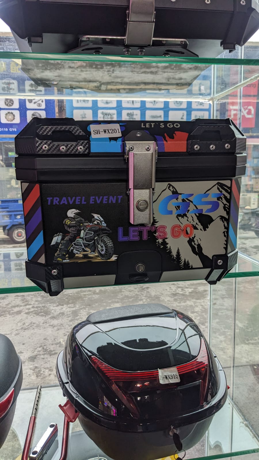 Universal Motorcycle GS Adventure ABS Plastic Back Top Box 45L Black Graphics Case Tail Box Luggage Fit